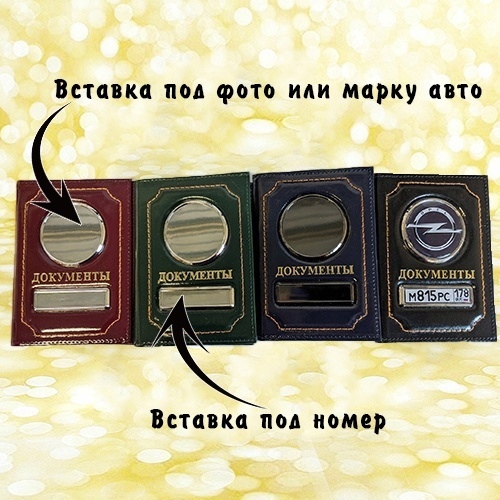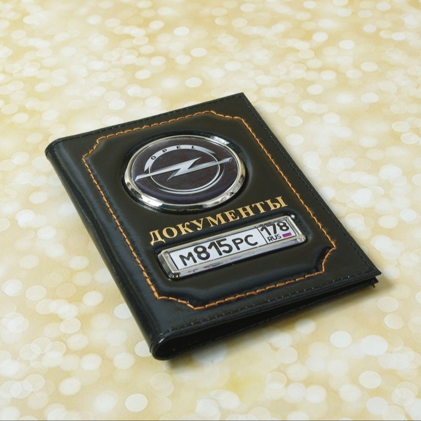 Обложка из натуральной кожи с вашим номерным знаком и маркой авто.